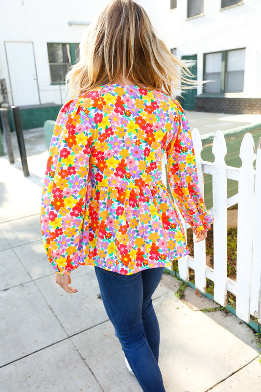 Chasing Dreams Ribbon Tie Bow Babydoll Puff Elastic Sleeve Floral Top