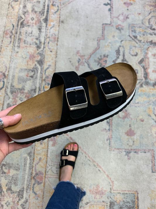 Beach Babe Sandals - Black Suede