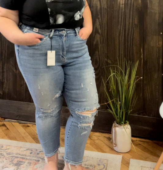 Florence High Waist Destroyed Boyfriend Jeans - Judy Blue