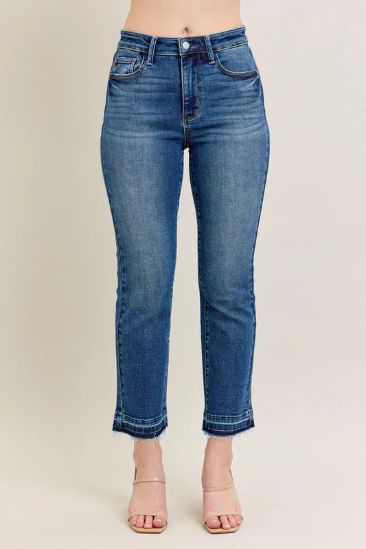 Alexis High Rise Control Top Slit Hem Slim Bootcut Jeans - JUDY BLUE
