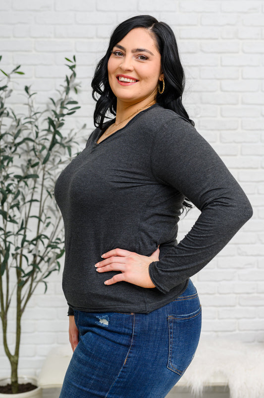 Scoop Me Up Long Sleeve Top in Ash Grey