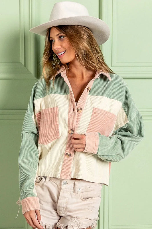 BiBi Color Block Vintage Washed Corduroy Jacket