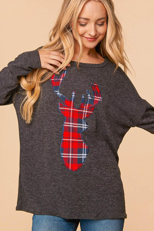 Gold Velvet Reindeer w/ Buffalo Plaid