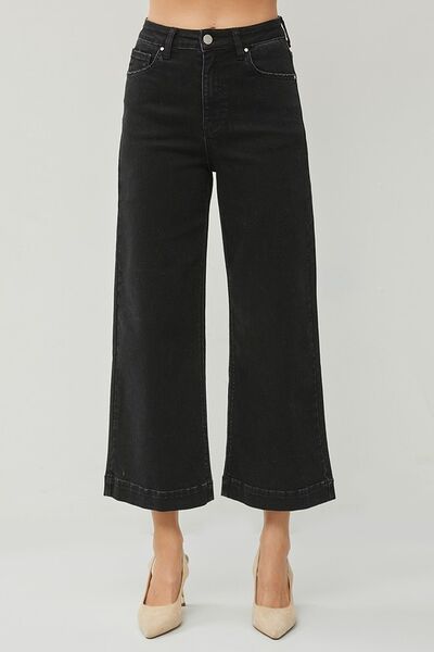 RISEN Full Size High Rise Crop Wide Leg Front Yoke Detail Jeans Plus Size