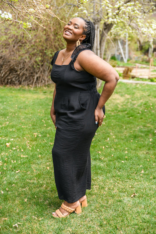BiBi Texture Smocked Sleeveless Jumpsuit