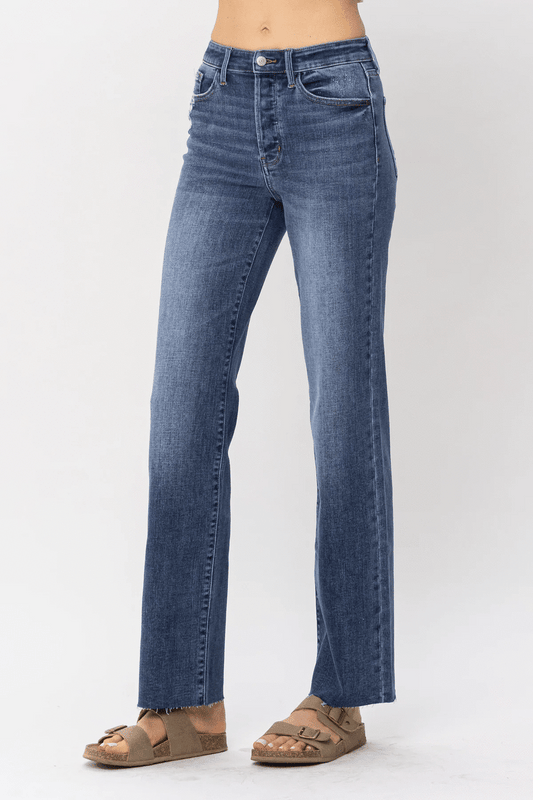 Piper Judy Blue High Waist Hidden Button Fly Straight Leg