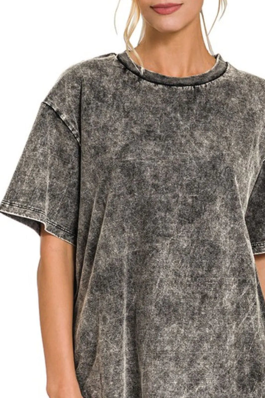 Zenana Back Patch Crinkle Washed Raglan Sleeve T-Shirt