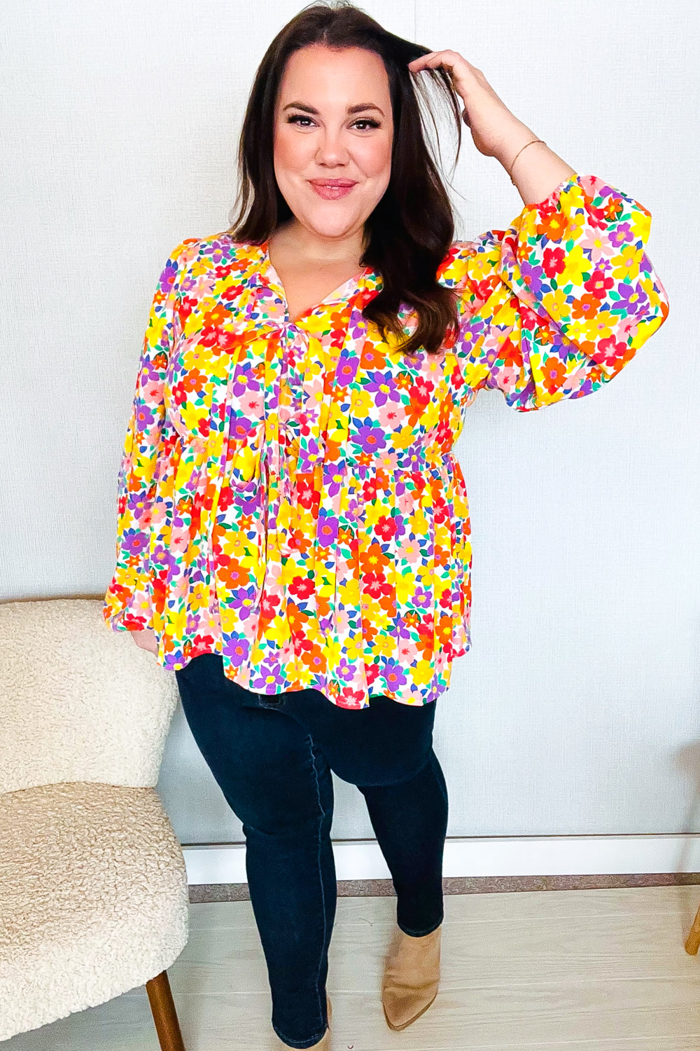 Chasing Dreams Ribbon Tie Bow Babydoll Puff Elastic Sleeve Floral Top