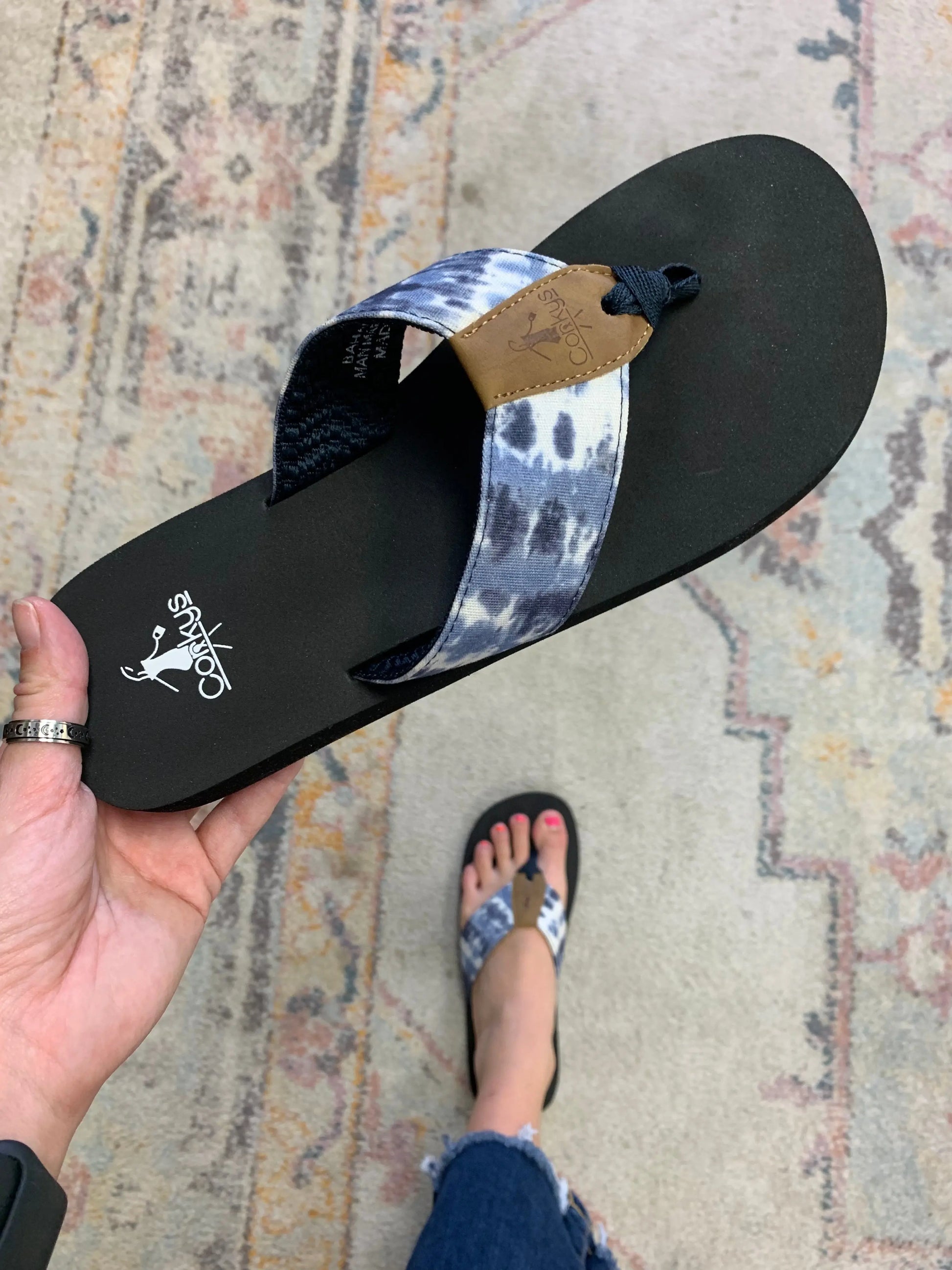 The cutest Corkys foam flip flops! With tie dye, cloth, between the toe straps and gripy bottoms these shoes are perfect for rocking whenever and where ever!