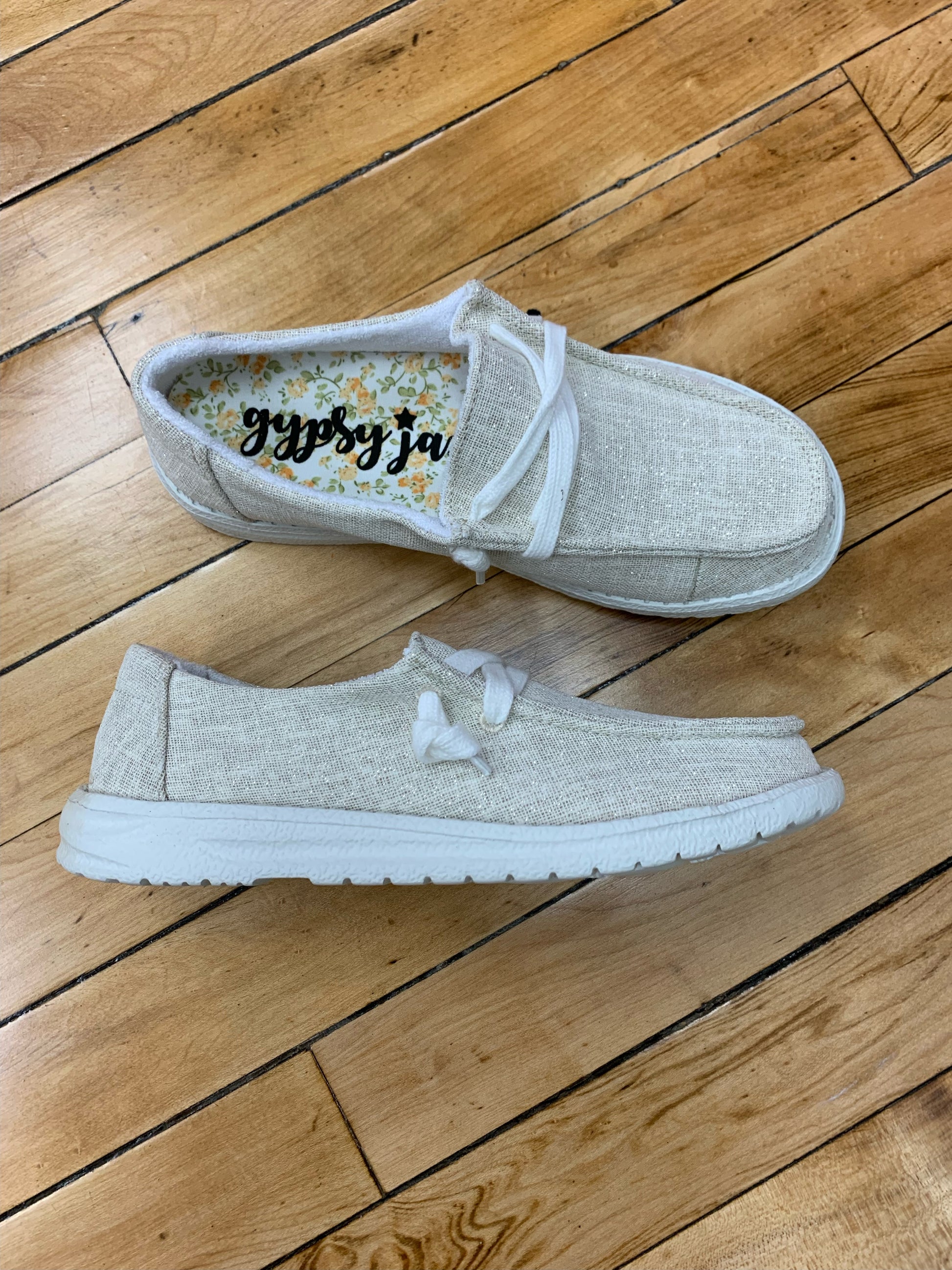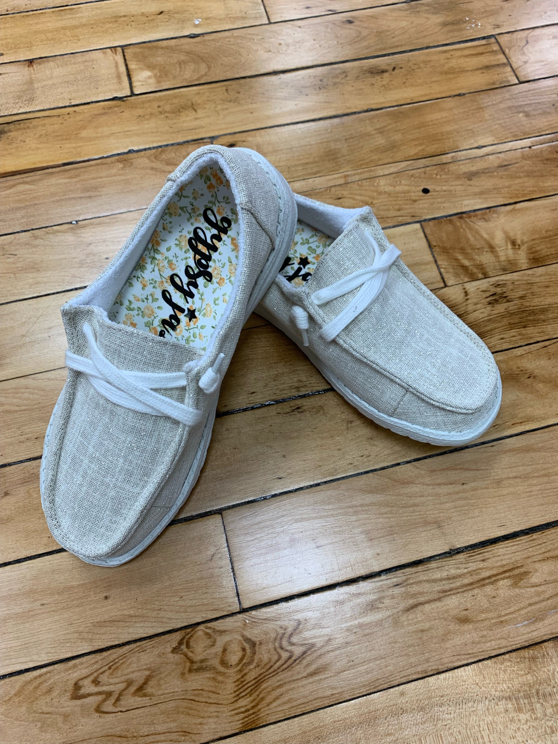 The cutest and comfy slip on shoe! These light weight shoes are perfect for wearing everyday! With adjustable ties and a comfortable fit these shoes are perfect for adding a little sparkle to your every day outfit or dressing up with some more bling!