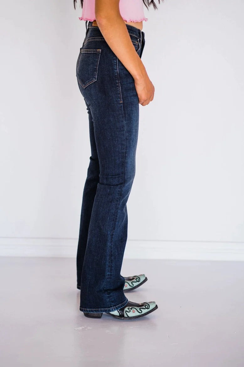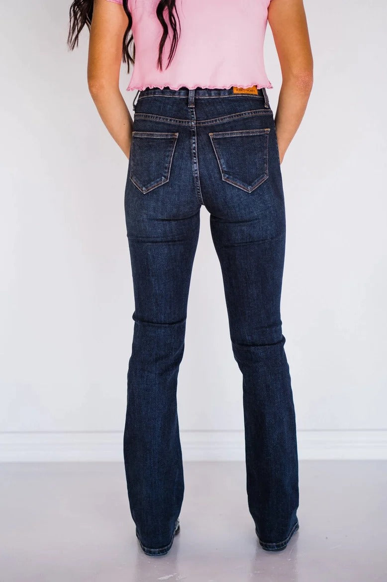 It's boot season! Non-distressed dark wash bootcut jeans are perfect for Winter and all those cute booties! Plus, these jeans hug you in all the right places to boost your confidence in that rockin' outfit.