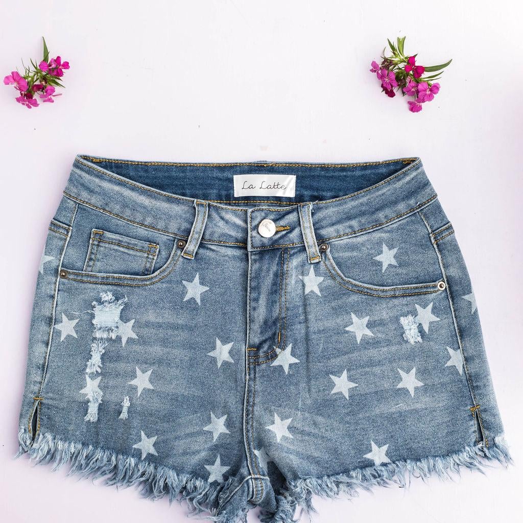 The Salma Shorts are expertly designed with a touch of spandex, providing the perfect amount of stretch for ultimate comfort. The frayed, blue jean shorts feature stars, adding a trendy and playful touch to your outfit. Enjoy style and ease with these must-have shorts.