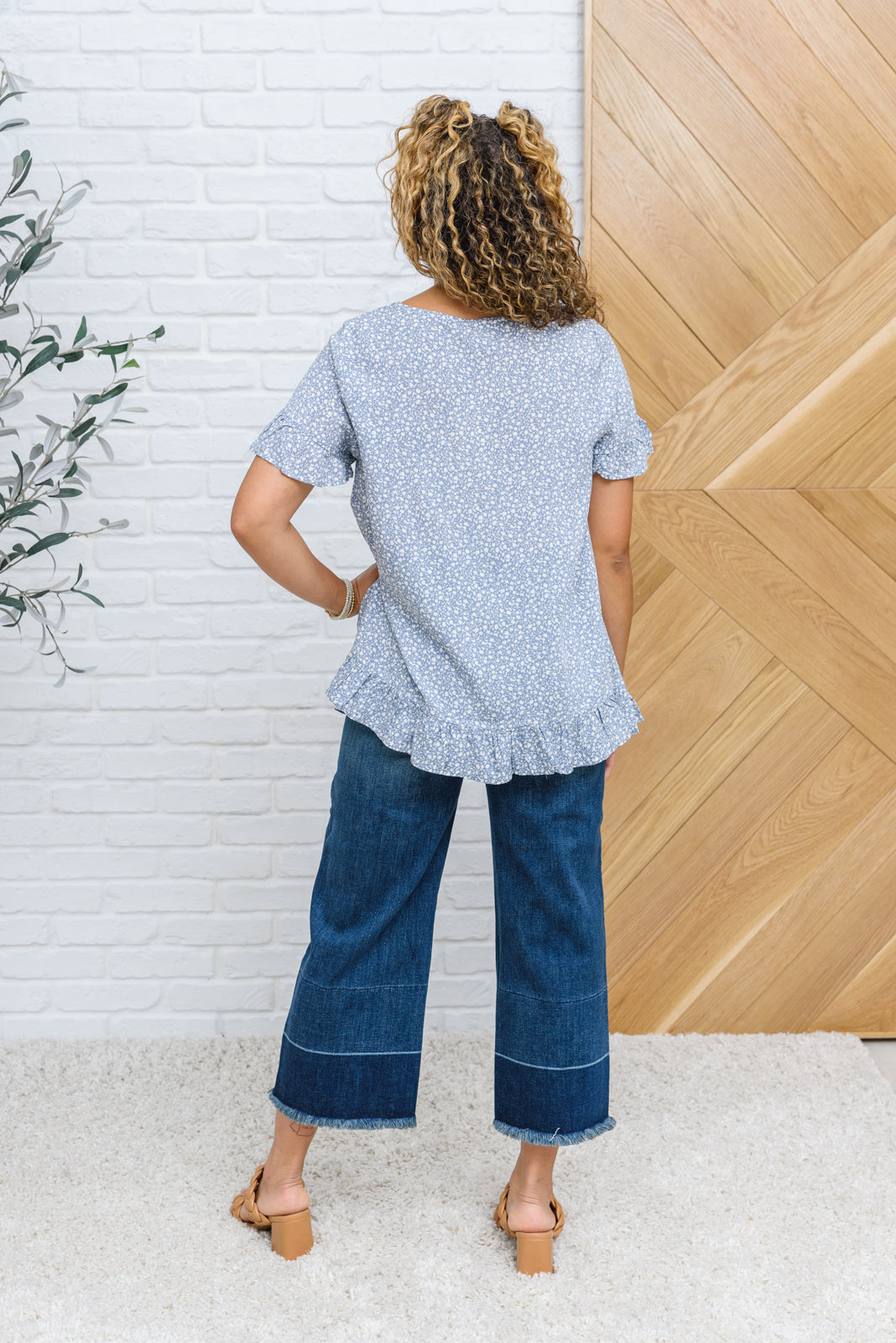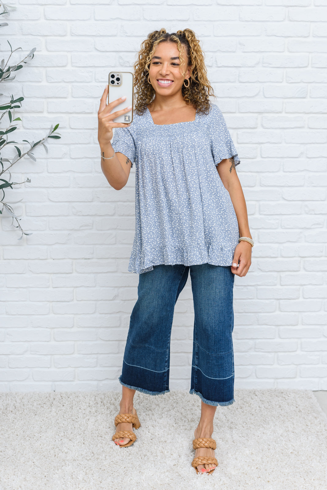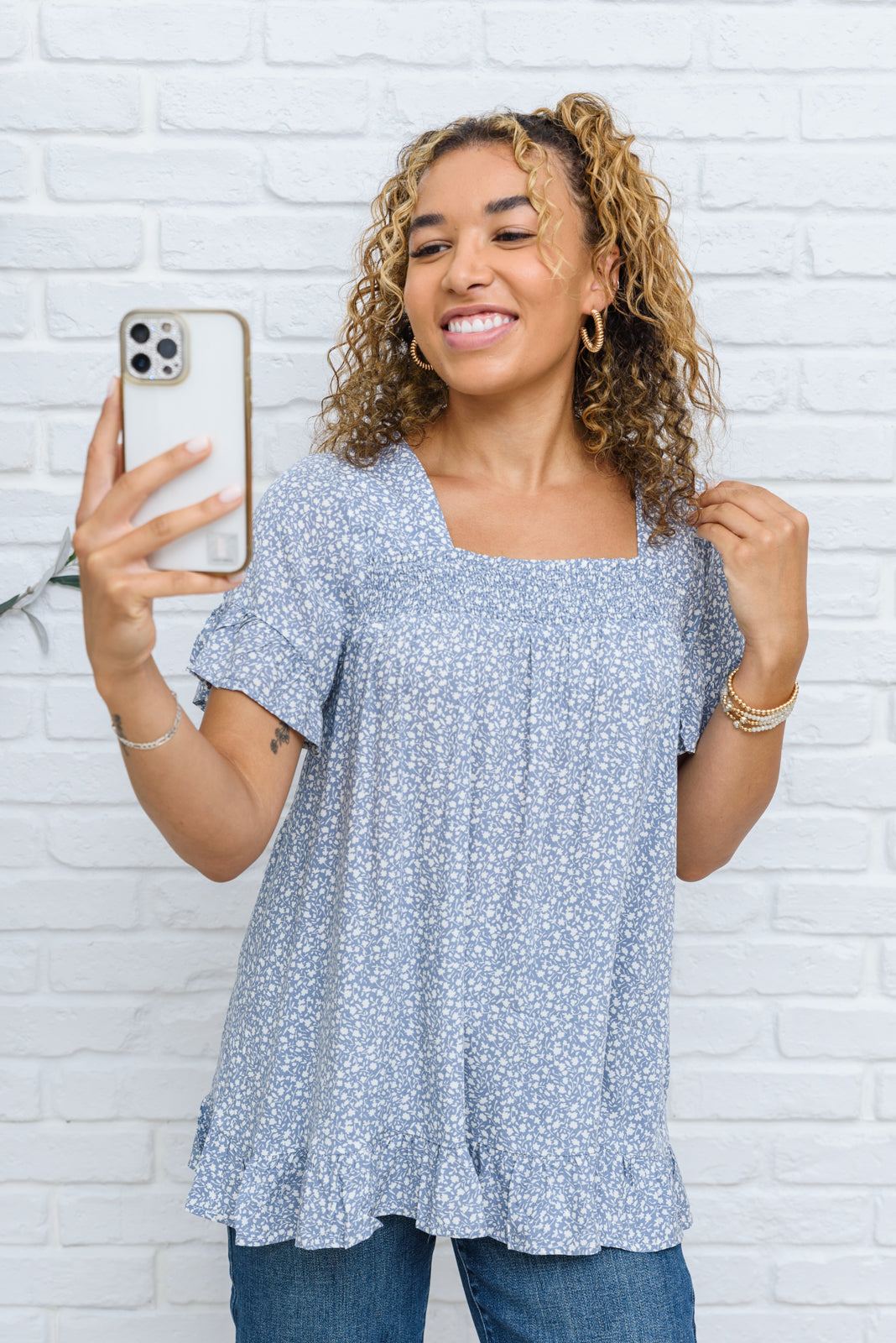 The Sweet Takeaway Top has the cutest details you'll love! Featuring a square neckline that tops a smocked band above the bust, and flowy bodice with ruffle hem that also lines the sleeves. The pastel blue and ditsy floral print creates the perfect girly and summery look! We promise you'll be so happy once this adorable top arrives at your doorstep!