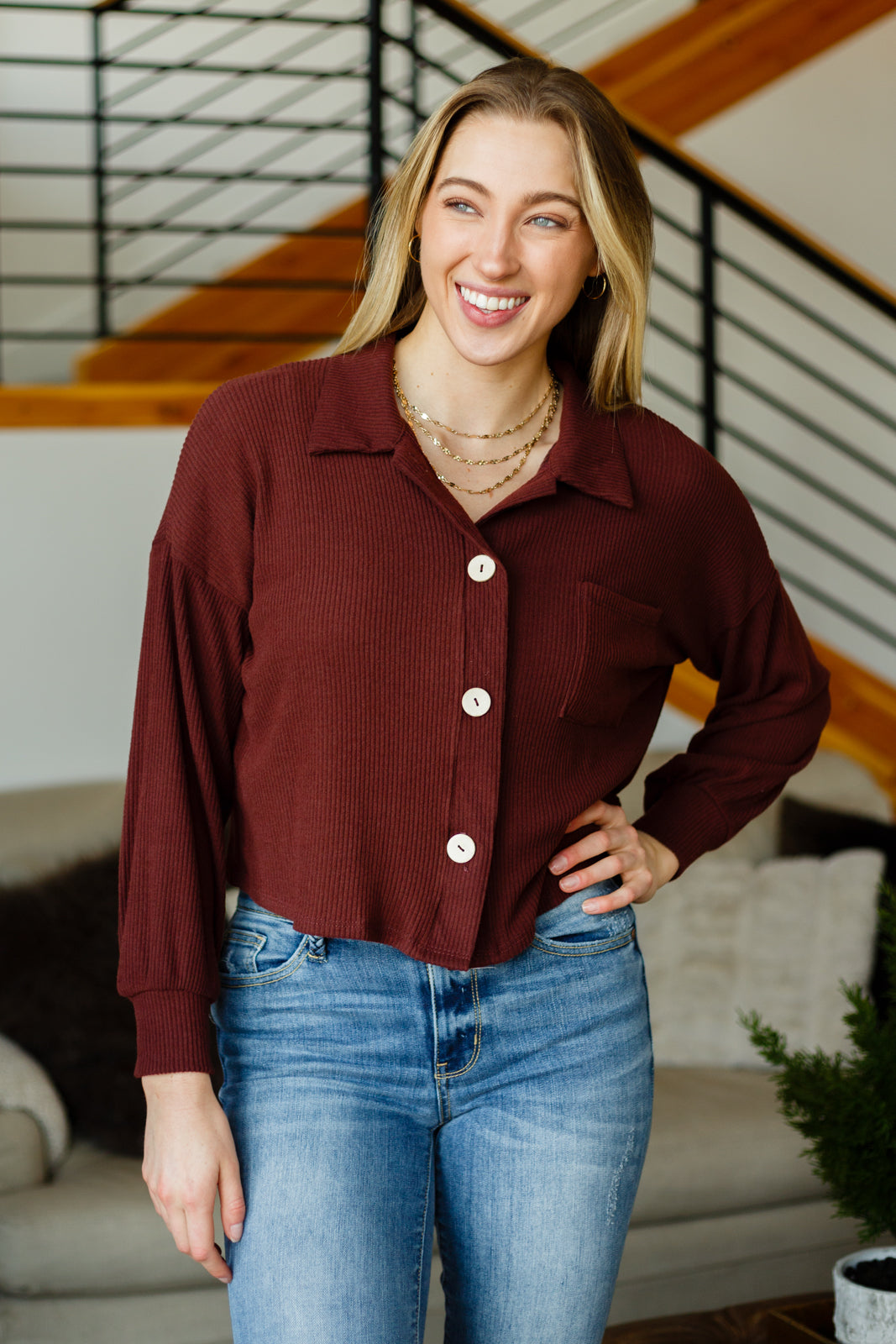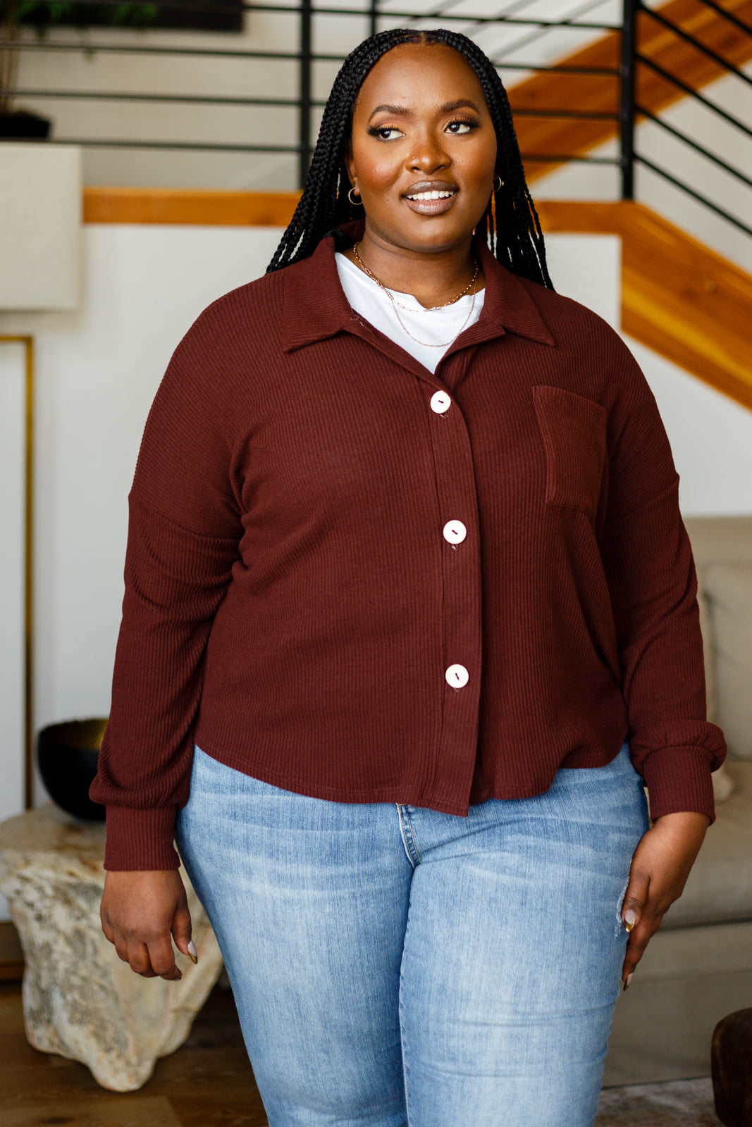 Keywords: Shacket, Maroon, Jacket, Cropped